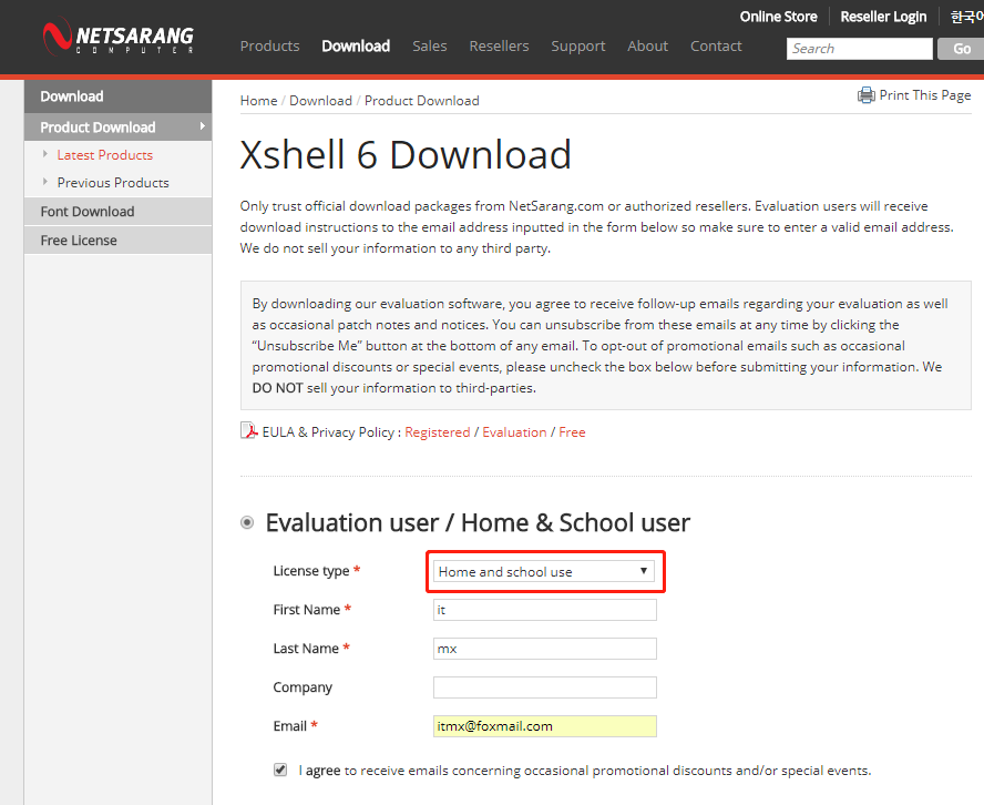稍等大约1分钟即可完成重启,此时下载好远程连接工具,我喜欢使用xshell进行连接(下载地址),注意选择免费版本(Home & School user),然后到邮箱会收到下载链接
