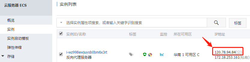 现在输入我们的远程连接命令 ssh root@你的服务器公网IP ,IP的在下图这个位置