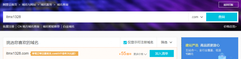 输入自己喜欢的域名,加入清单