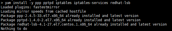 yum install -y ppp pptpd iptables iptables-services redhat-lsb