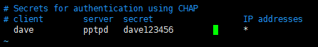 vi /etc/ppp/chap-secrets