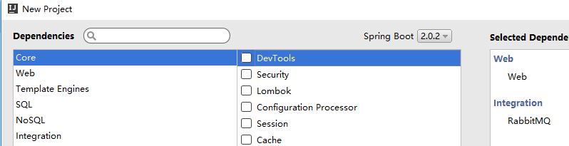 勾选web和rabbitmq依赖