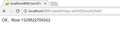 接下来我们运行这个springboot项目,在浏览器访问:http://localhost:8081/send?msg=are you ok?