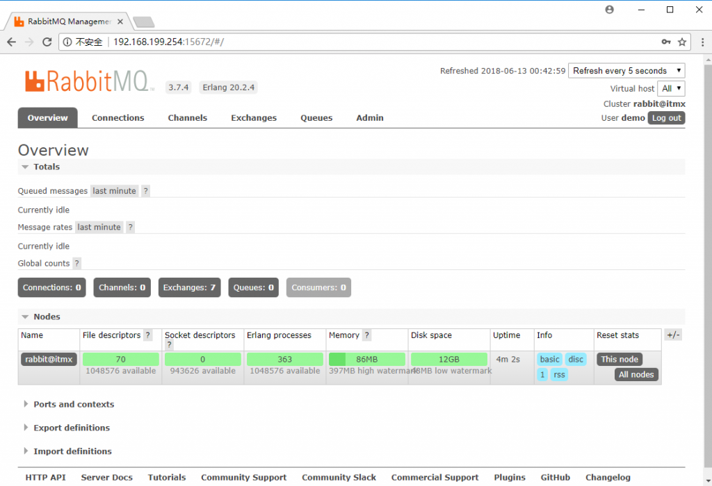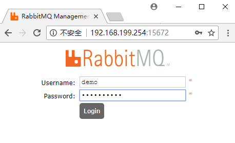 然后打开浏览器访问http://你的虚拟机ip:15672 ,使用demo:mypassword登录