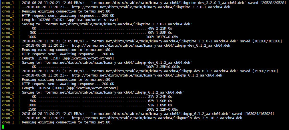 entrypoint: | bash -c 'bash -s <<EOF trap "break;exit" SIGHUP SIGINT SIGTERM while /bin/true; do cd /html wget -r -N http://termux.net/ sleep 24h done EOF'